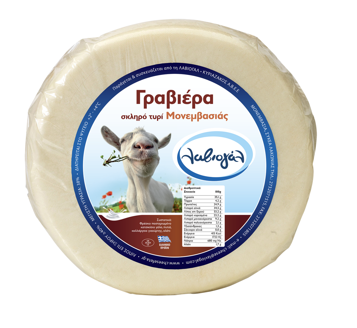 Η Γραβιέρα Μονεμβασιάς μας είναι ένα επιτραπέζιο σκληρό τυρί που παράγεται από φρέσκο παστεριωμένο γίδινο γάλα. Η πλούσια γεύση της θα κερδίσει επάξια μια θέση καθημερινά στο τραπέζι σας! Σερβίρετέ την ως συνοδευτικό ή τρίψτε τη για τη μακαρονάδα σας.