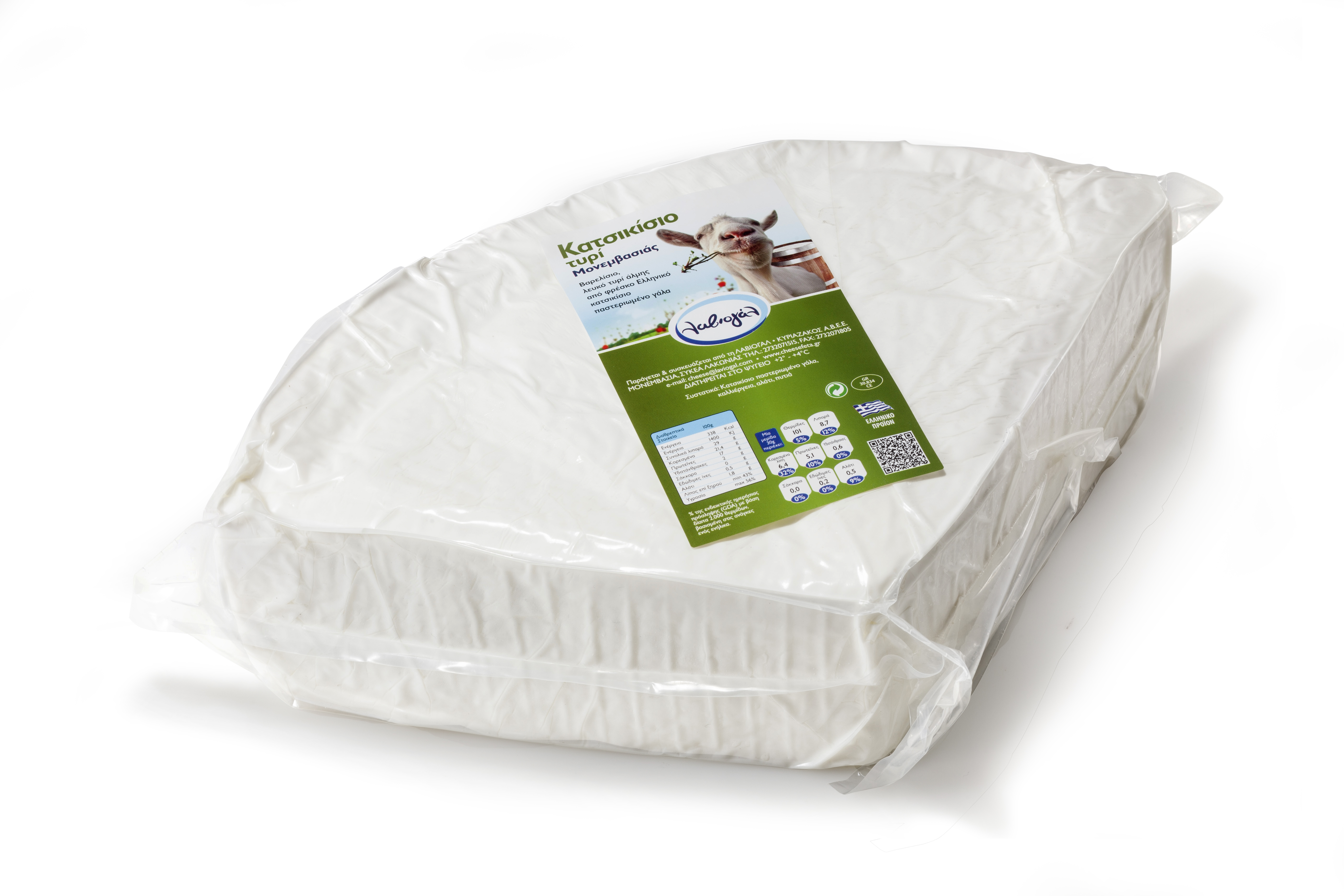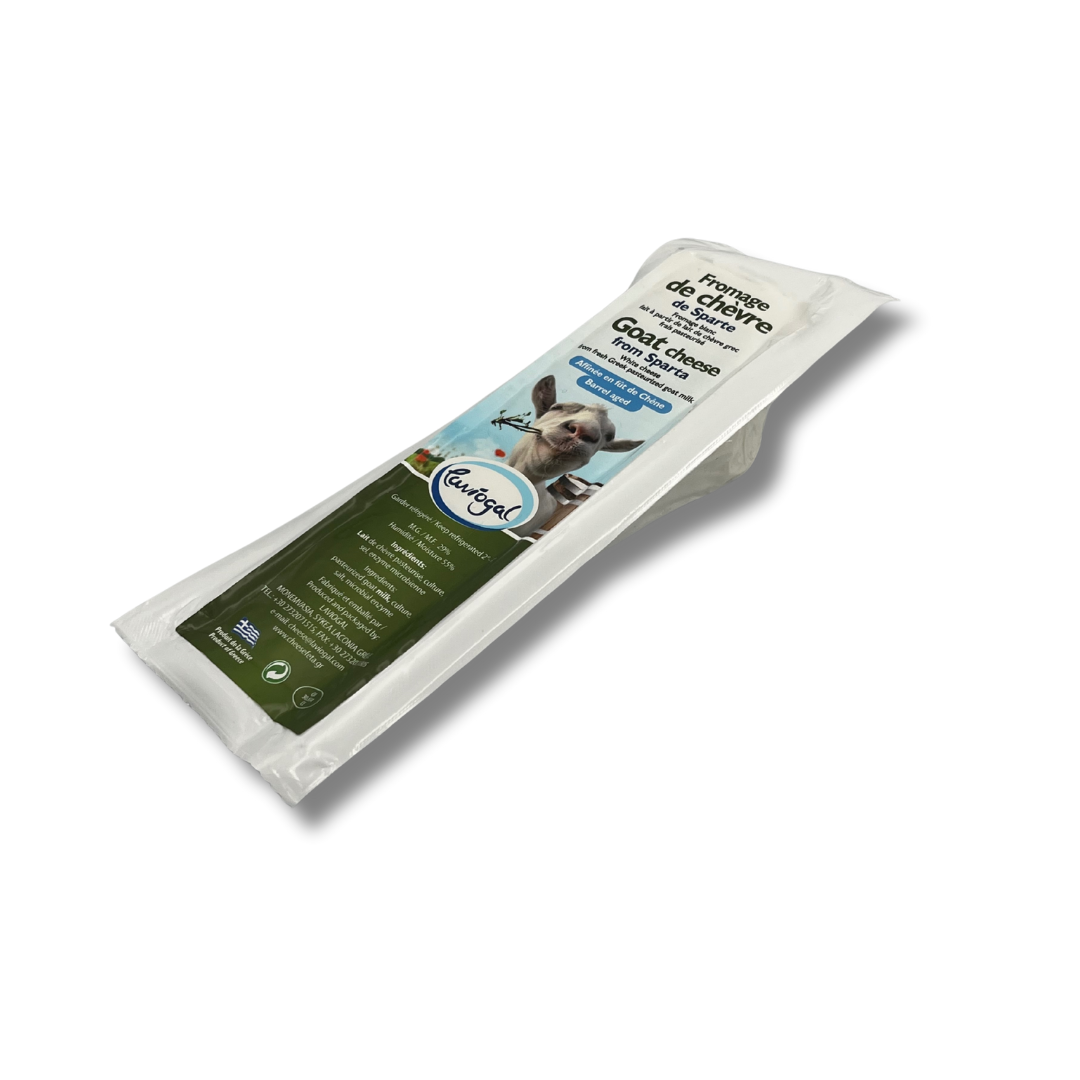 Το Κατσικίσιο Τυρί Μονεμβασιάς μας είναι ένα παραδοσιακό λευκό τυρί με ιδιαίτερη πιπεράτη και πικάντικη γεύση. Παράγεται από εκλεκτό φρέσκο παστεριωμένο κατσικίσιο γάλα που συλλέγεται καθημερινά από αίγες που διαβιώνουν με φυσικό και υγιεινό τρόπο στη Λακωνία. Η ωρίμανση γίνεται σε ξύλινα βαρέλια και σε μεταλλικά δοχεία, σε απόλυτα ελεγχόμενες συνθήκες, για να διατηρείται η πλούσια και ιδιαίτερη γεύση του που το κάνει να ξεχωρίζει.